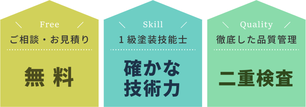 国家資格「1級塗装技能士」が在籍。専門性の高い技術で長持ちする美しい施工を実現します。